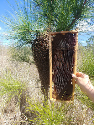 I'll be putting a longer video together for youtube that show s us gathering her up for her new home. The magic of swarms are both a blessing and a reminder to keep up on our hive populations. The balance is a delicate dance of timing and room to grow. Kind of like raising kids!