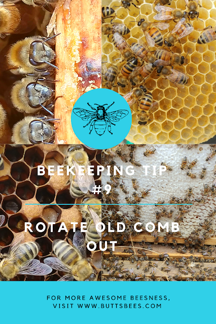 Rotating out those old comb can give the bees some clean space and reduce the infiltration of toxic residues. If you have established hives the rotating out of old comb may give the hive new vitality. If you are still in the beginner stages it will be a habit well worth establishing. For the good of the hive!
