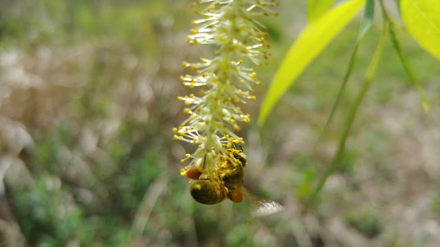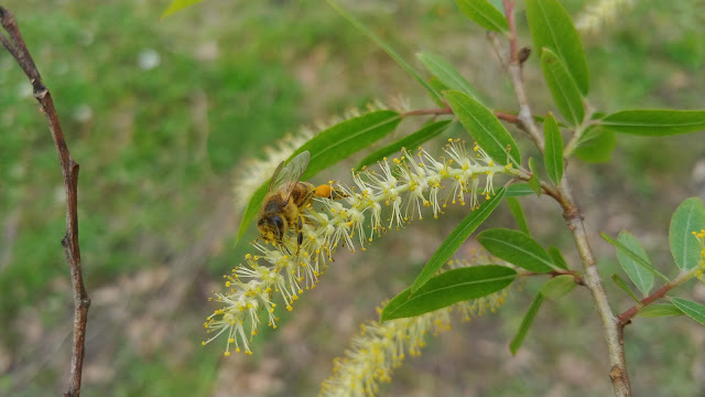 For our purposes of encouraging pollinators , Willows produce a modest amount of nectar from which bees can make honey, and are especially valued as a source of early pollen for bees. (Poor people at one time often ate willow catkins that had been cooked to form a mash). It is used as food plants by the larvae of some Lepidoptera species, such as the mourning cloak butterfly.