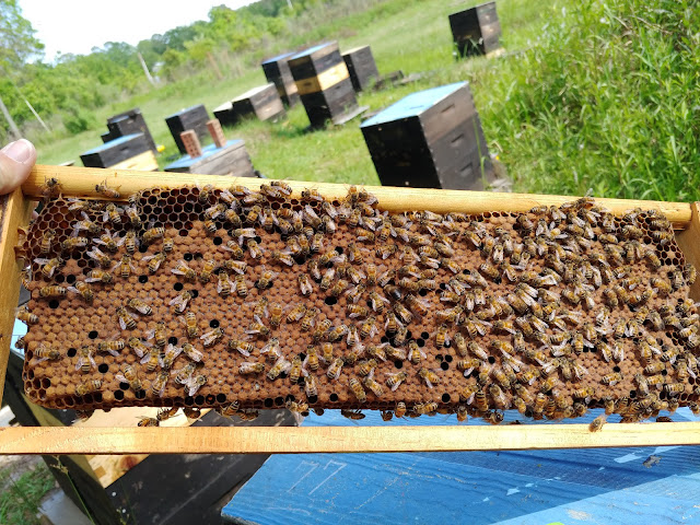 The main driver of the hive aside from the queen is the brood. A hive should have eggs, open larvae and capped brood. I raise hygienic queens so looking at a frame of capped brood for pattern is no longer a good indicator. We need to pull frames of open larvae to assess good brood pattern. This is because hygienic queens will produce capped brood frames that may look "shotgun" in pattern. An open brood frame will show the true state of pattern before hygienics kick in.