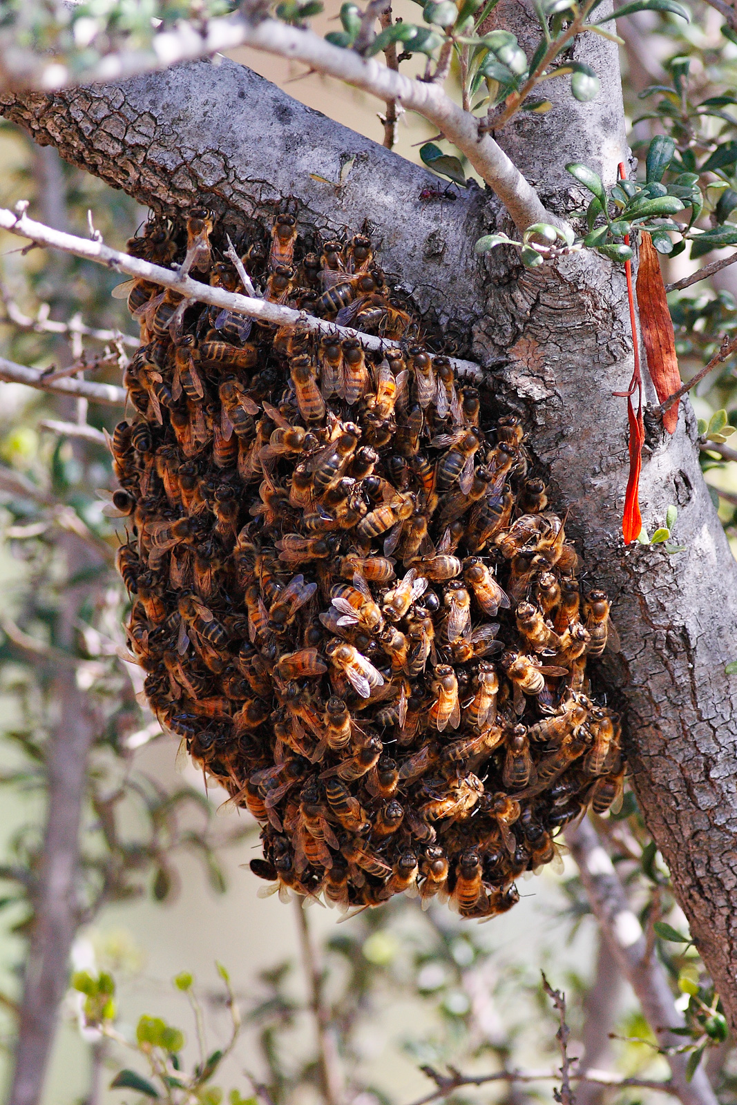 The bees that leave the hive in a swarm take about 1/6 of the varroa mites with them; most of the mites remain in the hive with a reduced population of bees. The first generation of bees from the new queen can be highly parasitized and very vulnerable.